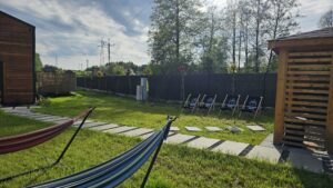 Stref wypoczynkowych w Królikowych chatach jest kilka, bo niektórzy wypoczywają aktywnie, a inni lubią leniuchowanie. Dlatego z myślą o wszystkich Gościach przygotowaliśmy luksusowe leżaki z hawajskim parasolem na prywatnej plaży, kilka hamaków i drewnianych leżaków. Dla aktywnych są piłki do siatkówki i piłki nożnej wraz z bramkami. W altanie znajdziecie też paletki do badmintona.